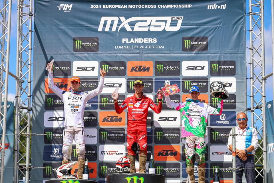 Grandissima prestazione del nostro pilota Valerio Lata che, sulla difficilissima pista di Lommel, con due secondi posti nelle manche nall’EMX250 si è aggiudicato il GP delle Fiandre!!!!!
